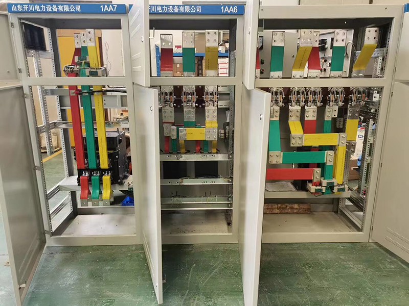 c、安裝主母線:打開母線室頂蓋板進行安裝,安裝好後緊固頂蓋板,連接母線時接觸麵應平整、無汙物,有汙物的地方應清理幹淨,並塗上電力複合脂增強導電性能。